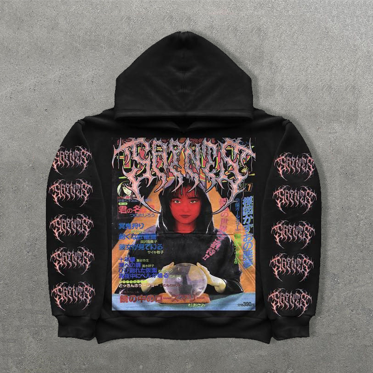 Dio Fear Print Long Sleeve Zipper Applique Embroidered Hoodies