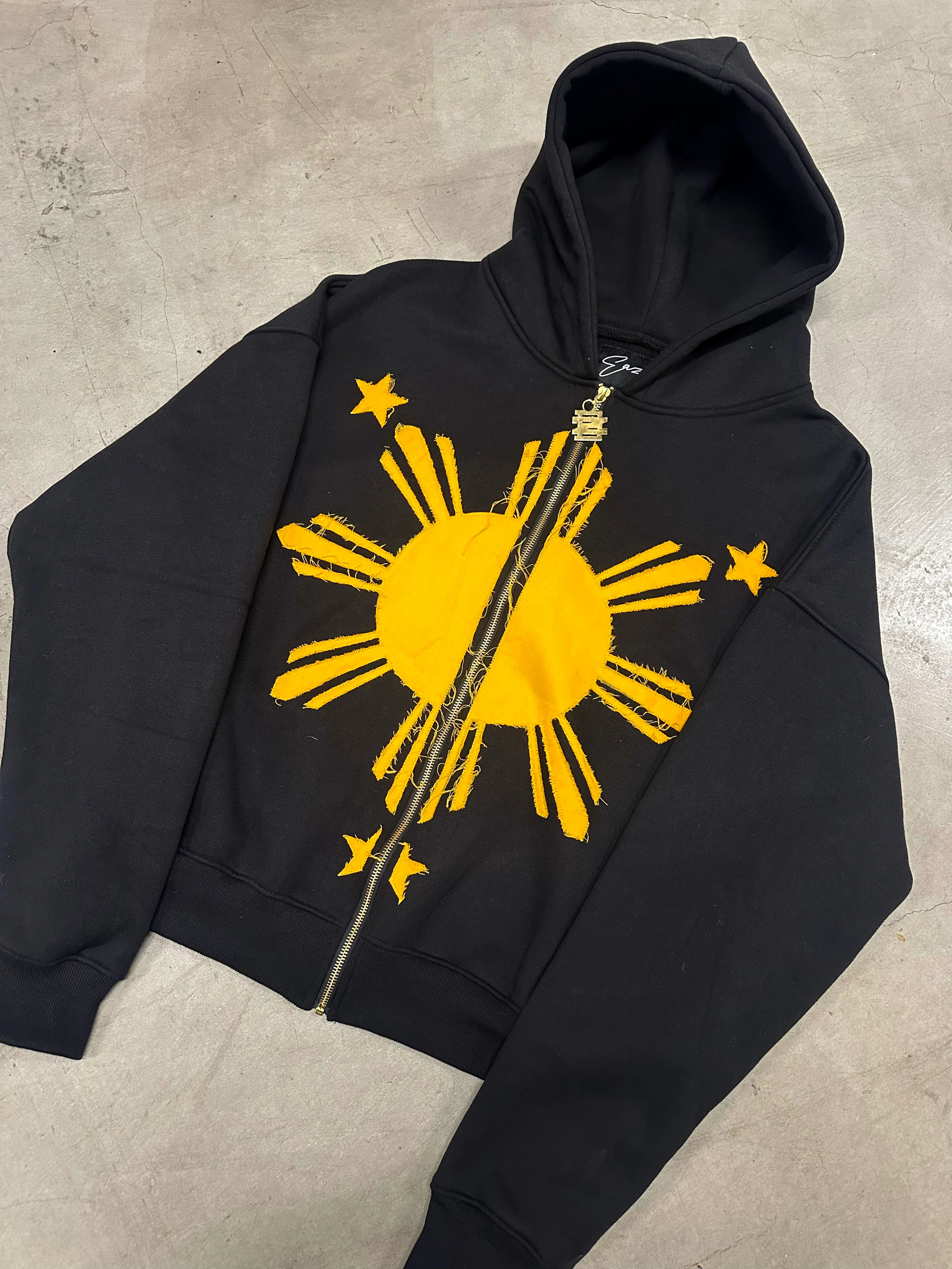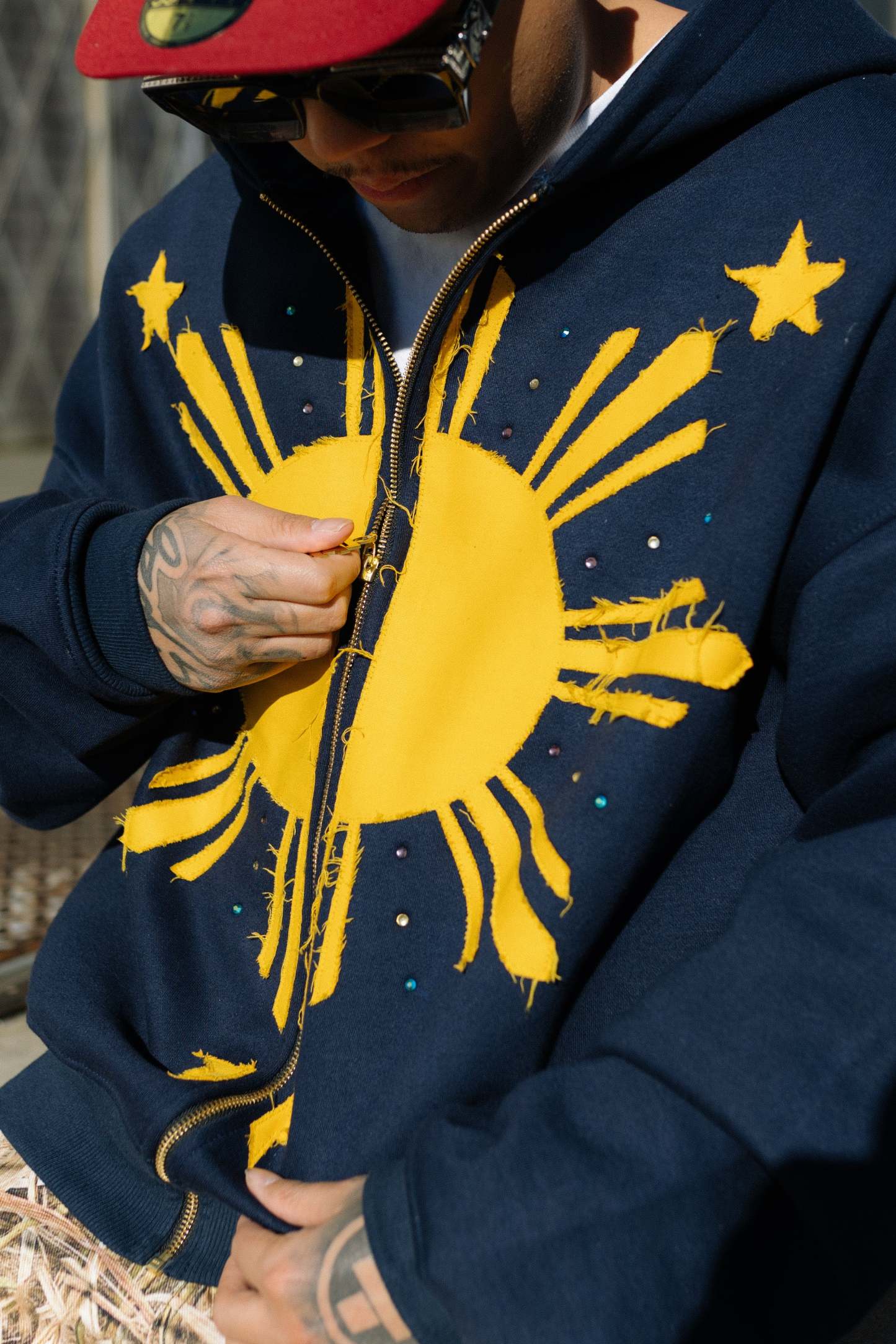 SUN GEMSTONE DISTRESSED EMBROIDERY HOODIE