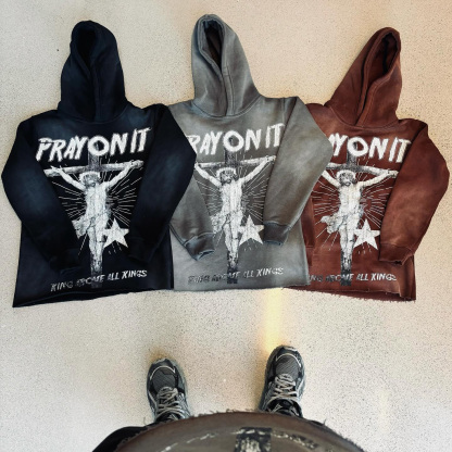 Jesus Is King Letters Print Long Sleeve Hoodies