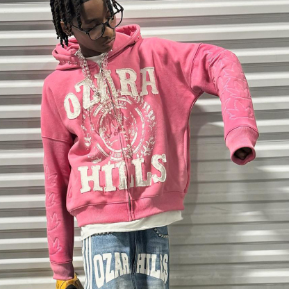 Ozara Mountain Casual Streetwear Zip-Up Hoodie